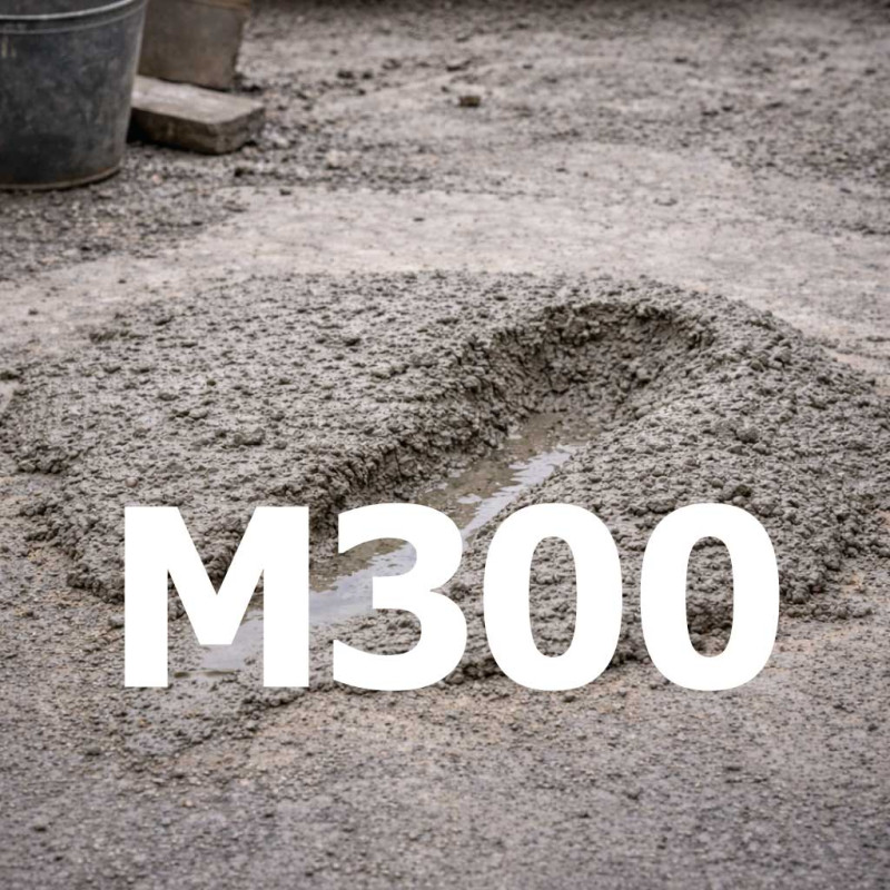 Марка М300 відповідає класу міцності В22,5 і часто застосовується в монолітному будівництві для конструкцій, які працюють під відчутним навантаженням. Це популярний вибір для приватних будинків, де потрібен запас міцності, а також для комерційних об’єктів і благоустрою з підвищеними вимогами.